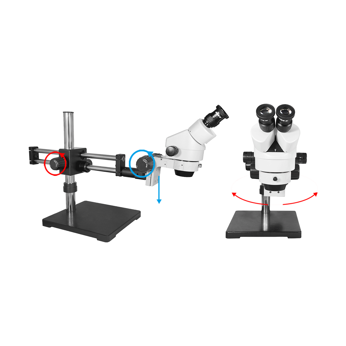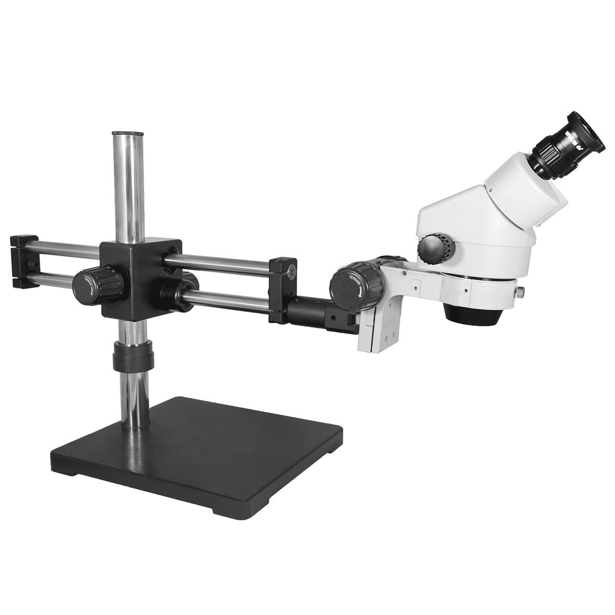 7X-45X Widefield Zoom Stereo Microscope, Binocular, Double Arm Boom Stand (Siedentopf)