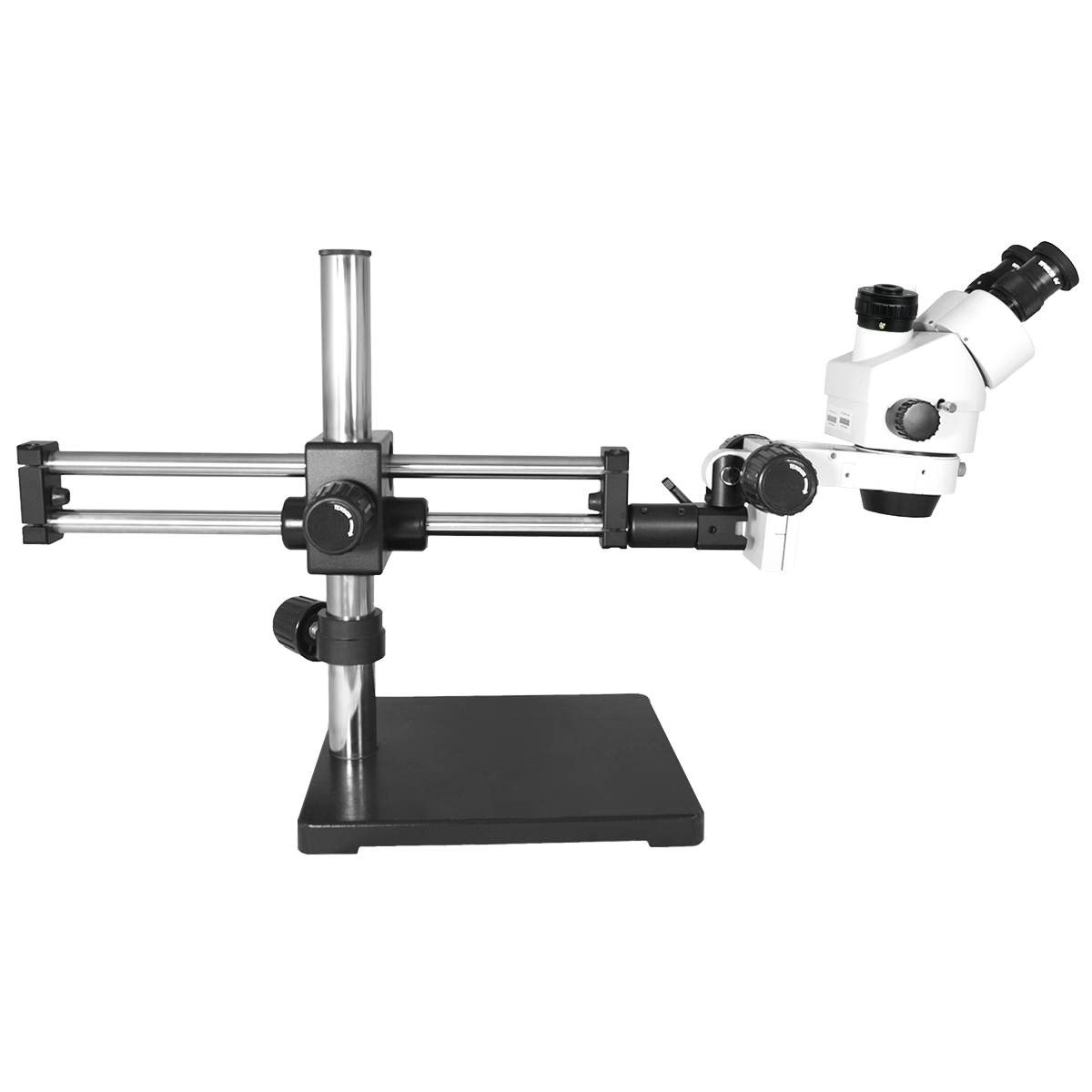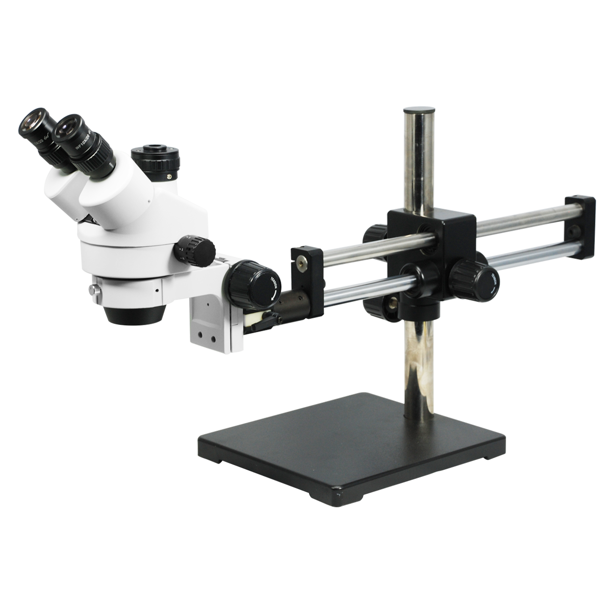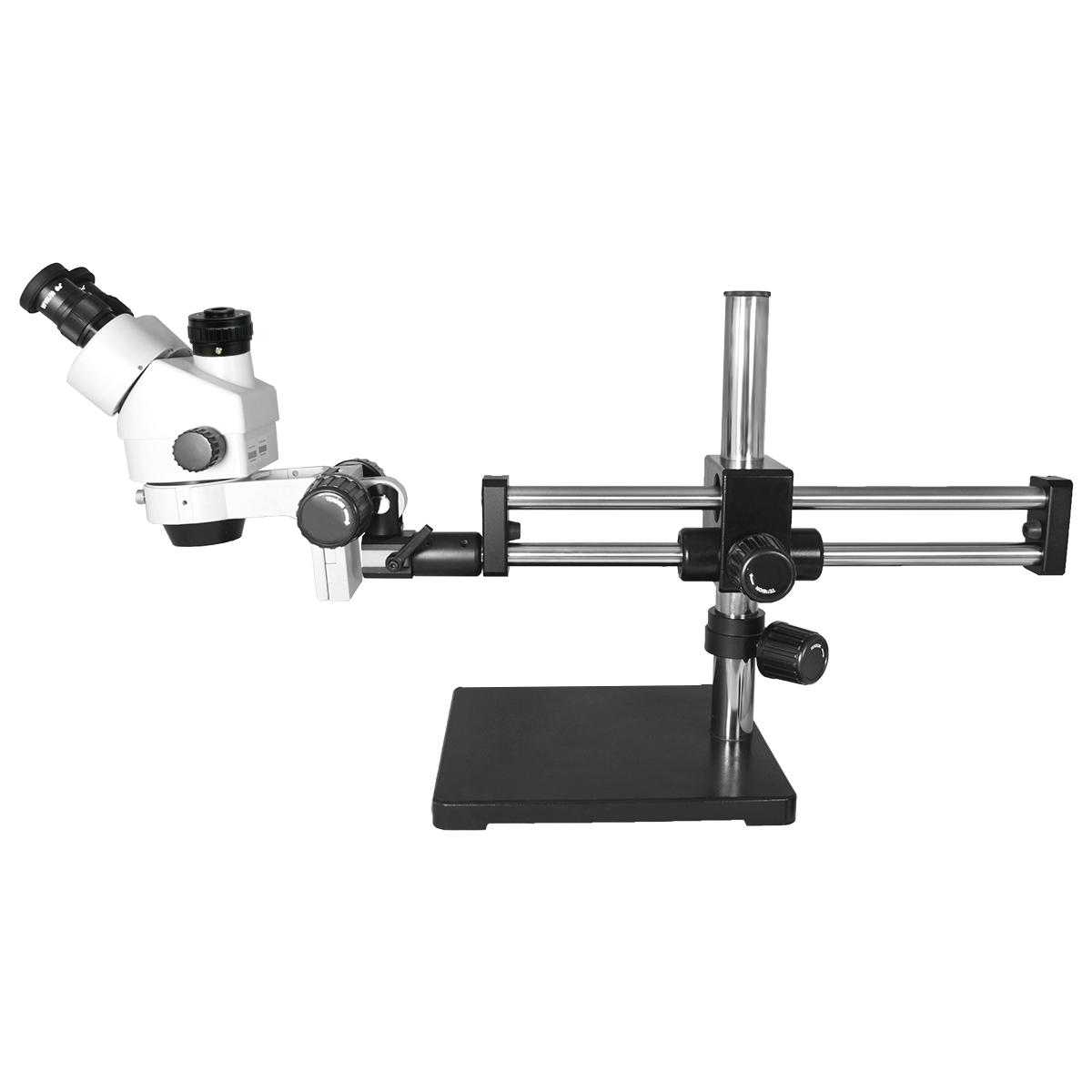 7X-45X Widefield Zoom Stereo Microscope, Trinocular, Double Arm Boom Stand (Siedentopf)