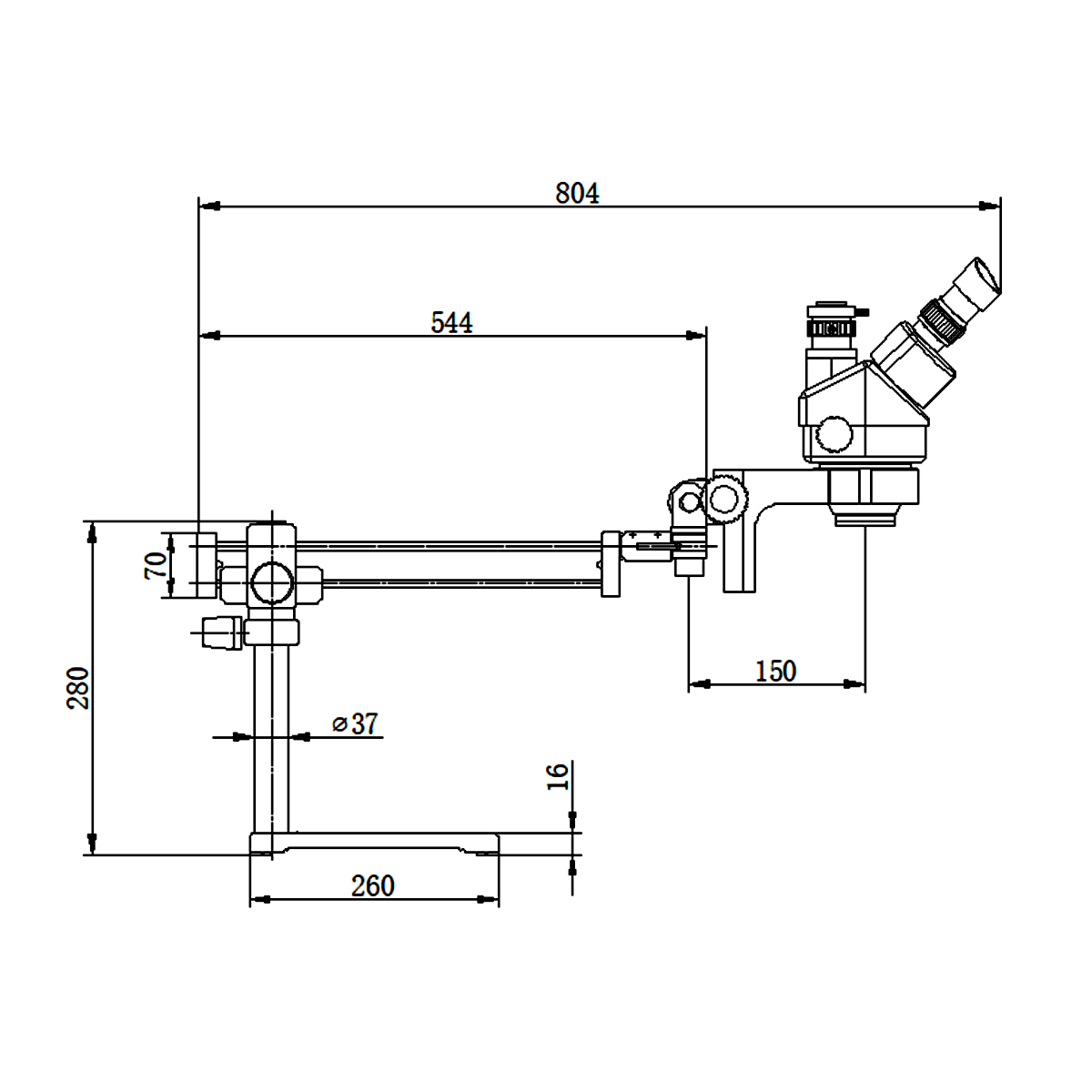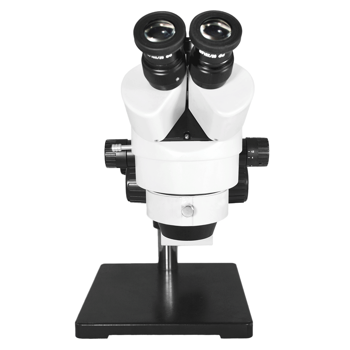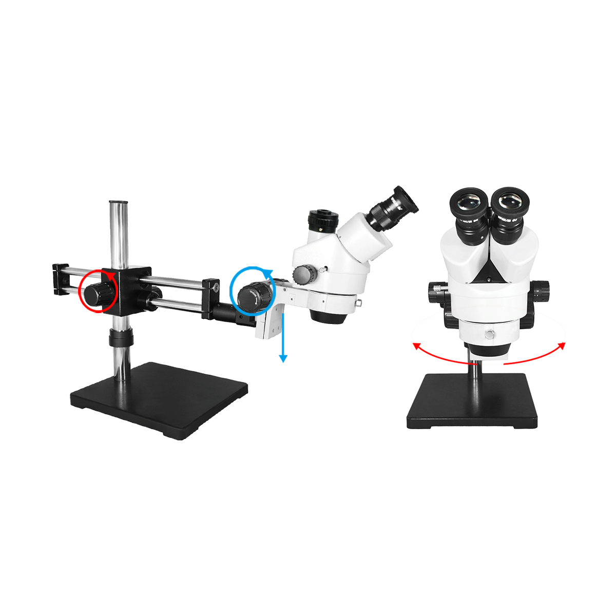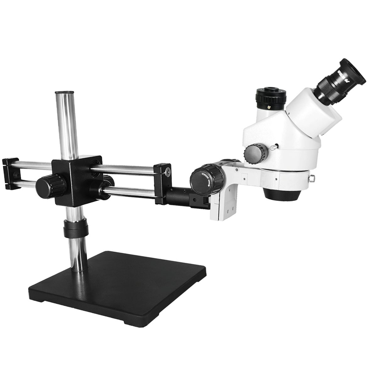 7X-45X Widefield Zoom Stereo Microscope, Trinocular, Double Arm Boom Stand (Siedentopf)