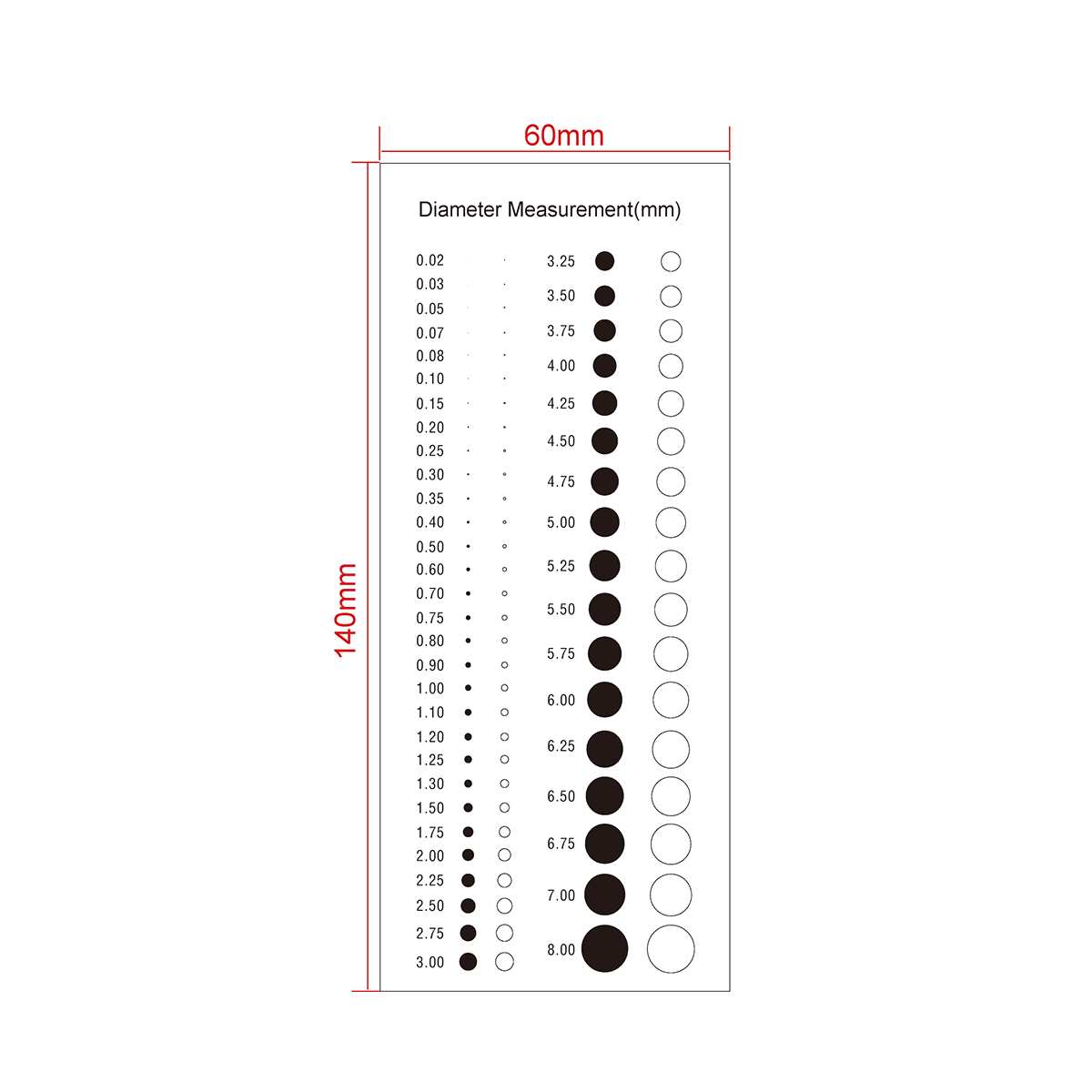 Multi-Function Film Ruler . Film Ruler Dimensions: 140x60x0.1mm. Diameters Range: Dia. 0.02-8.00mm.