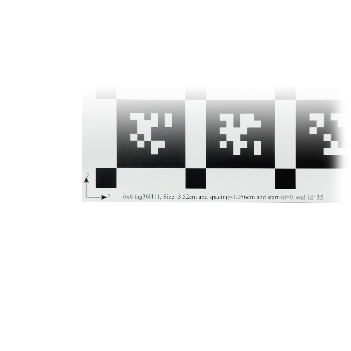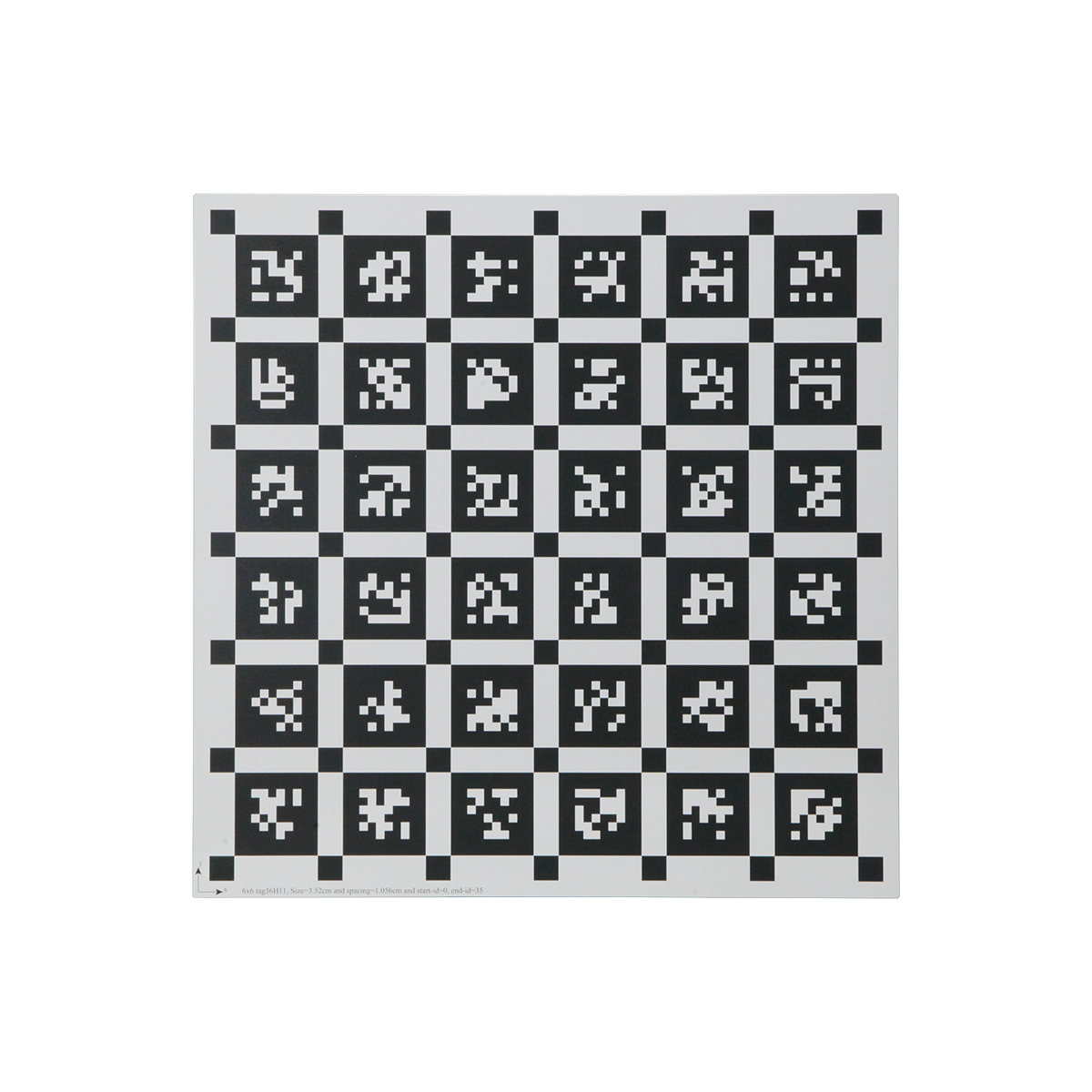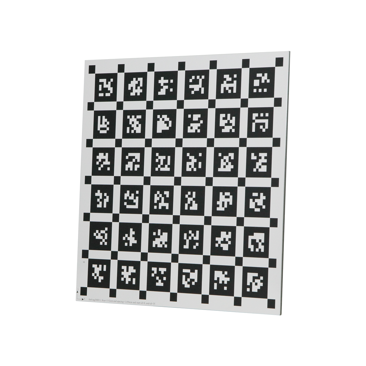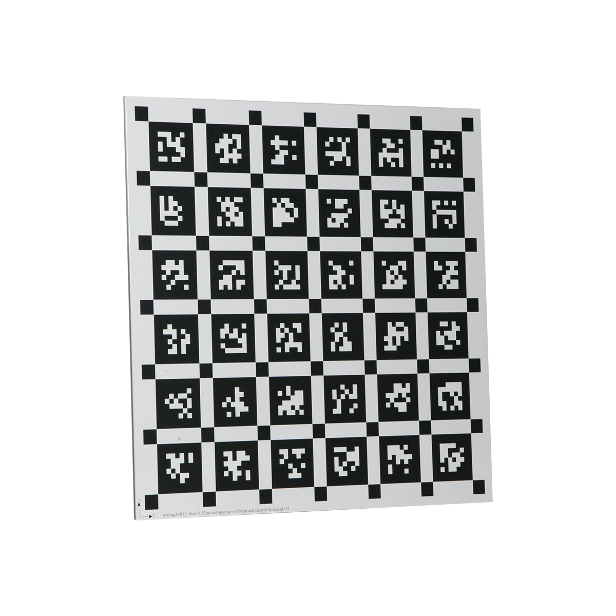 300x300mm. AprilTag Marker Size: 3.52cm. Array Specification: 6x6. Substrate Material: Green Float Glass. Panel Material: Alumina. Manufacturing Precision: ±10μm. Tag36h11.