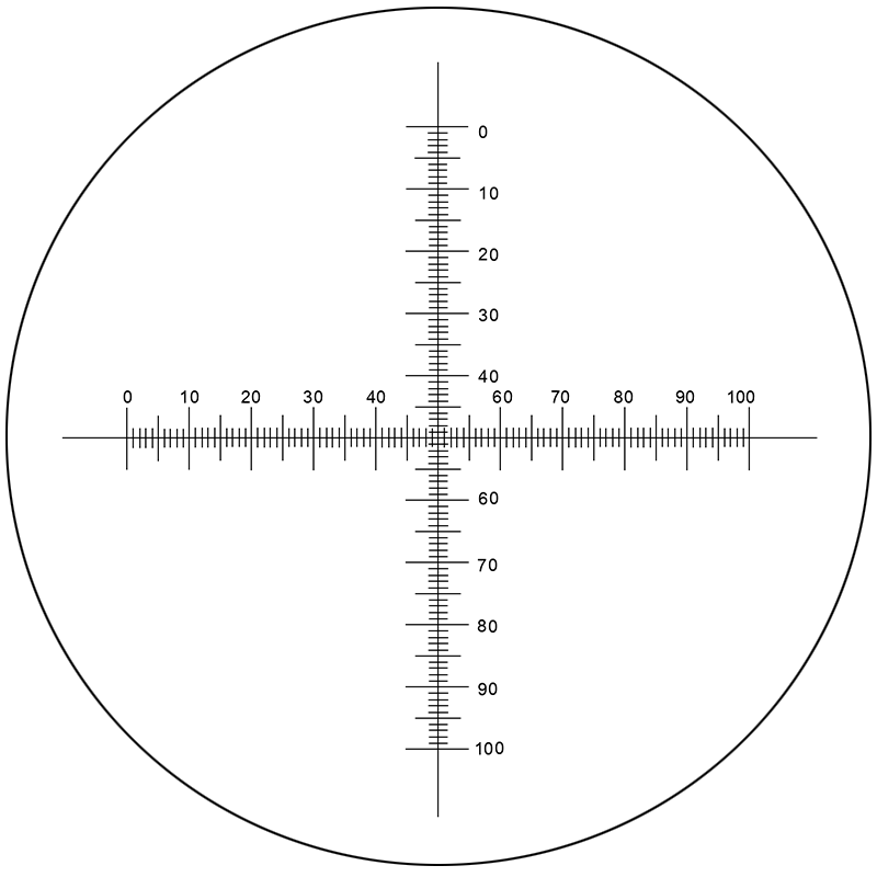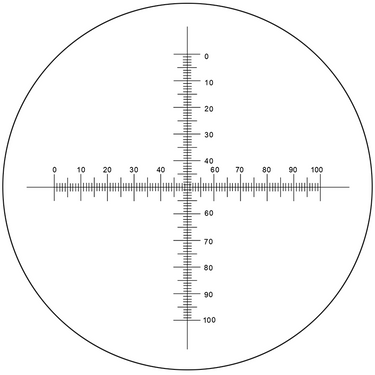 Crosshair Scale. Reticle Dimensions: Dia. 16x1.5mm. 10mm/100 Div . Background Type: Positive.