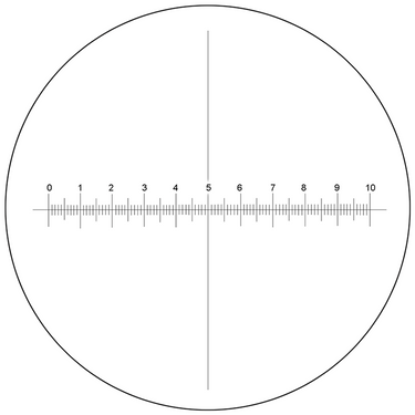 X-Axis Crosshair Scale. Reticle Dimensions: Dia. 24x1.5mm. 10mm/100 Div . Background Type: Positive.