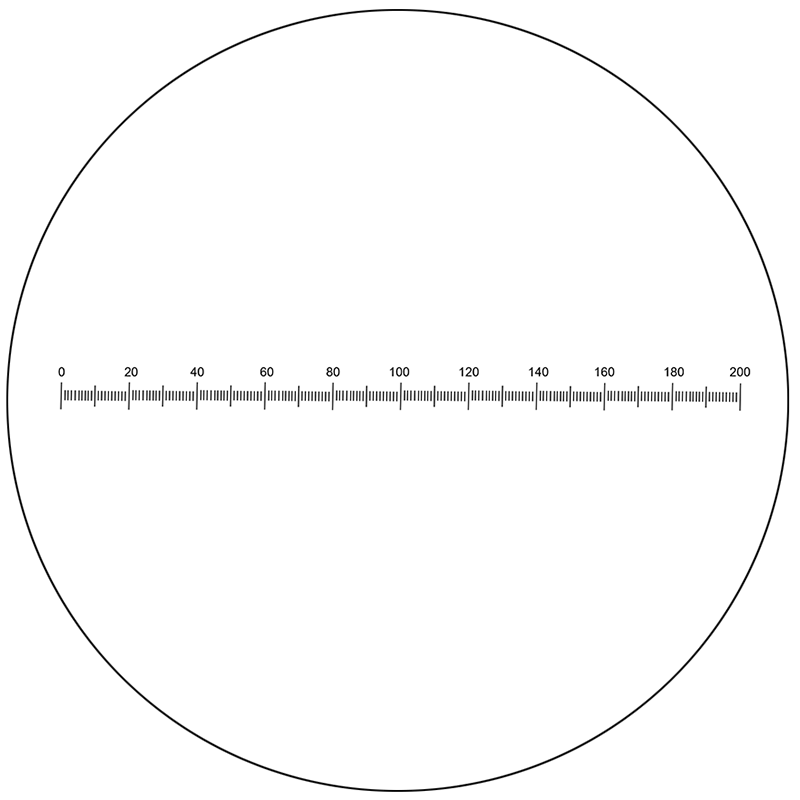 Single Line. Reticle Dimensions: Dia. 22x1.5mm. 10mm/200 Div. Background Type: Positive.