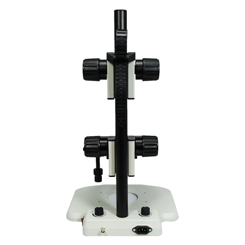 Dual Stage Stand. Dia. 76mm Scope Holder. Track Length: 520mm. Base Dimensions: 320x316x21mm. Upper Stage Dimensions: 185x140x23mm. Upper Stage XY Travel Distance: 76x50mm. Focus Distance: 261mm. Black White Plate. Clear Glass Plate. Plate Size: 96x76x1.5mm. Plate Size: Dia. 95x5mm. Illumination Type: LED Transmitted Light. Input Voltage: AC 90-240V 50/60Hz. Output Voltage: DC 6/12/24V. Power Cord Connector Type: USA 3 Pins.