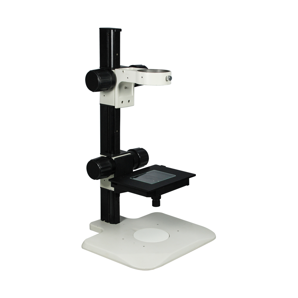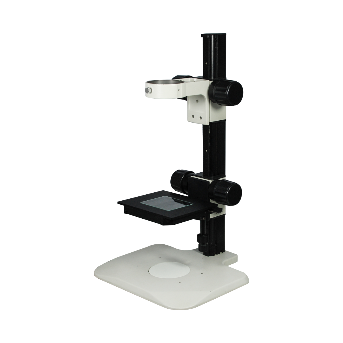 Dual Stage Stand. Dia. 76mm Scope Holder. Track Length: 520mm. Base Dimensions: 320x316x21mm. Upper Stage Dimensions: 185x140x23mm. Upper Stage XY Travel Distance: 76x50mm. Focus Distance: 261mm. Black White Plate. Clear Glass Plate. Plate Size: 96x76x1.5mm. Plate Size: Dia. 95x5mm.