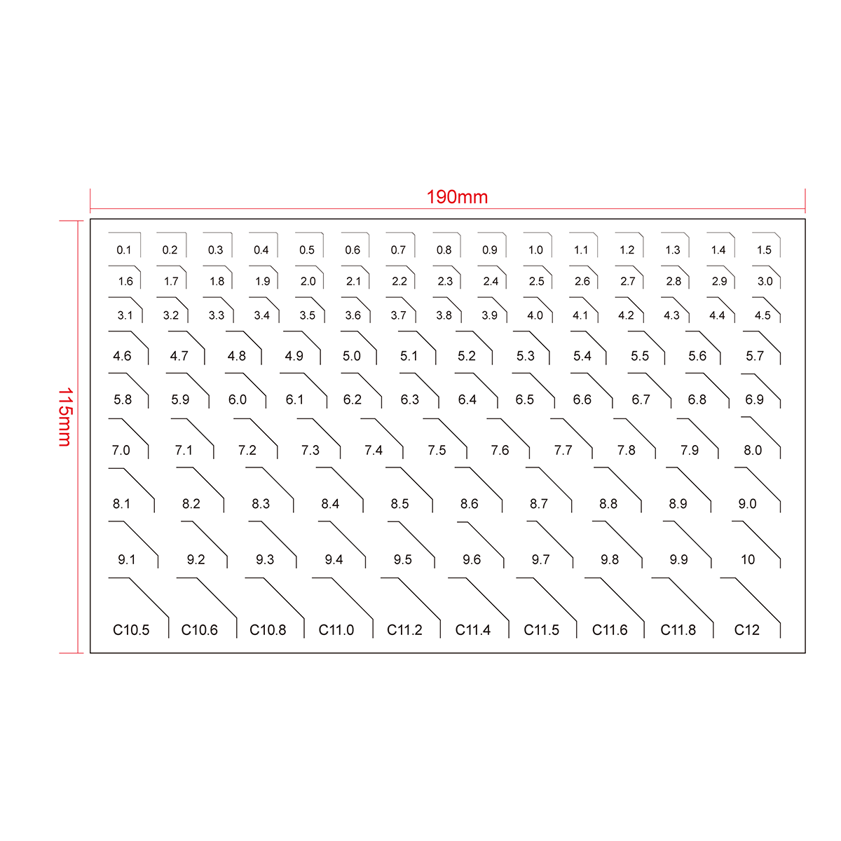Transparent Ruler. Film Ruler Dimensions: 190x115x0.1mm. C0.1-12mm.