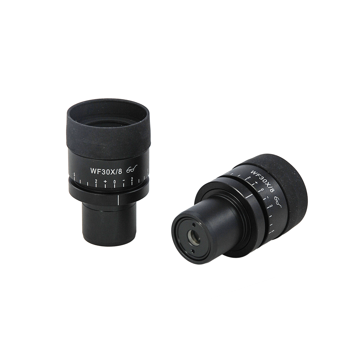 Adjustable Eyepiece. Eyepiece Optical Magnification: 30X. Eyepiece Size for Eye Tube: Dia. 30mm. Eyepiece Field of View: Dia. 8mm. Eyepiece Diopter Correction: ±5°.